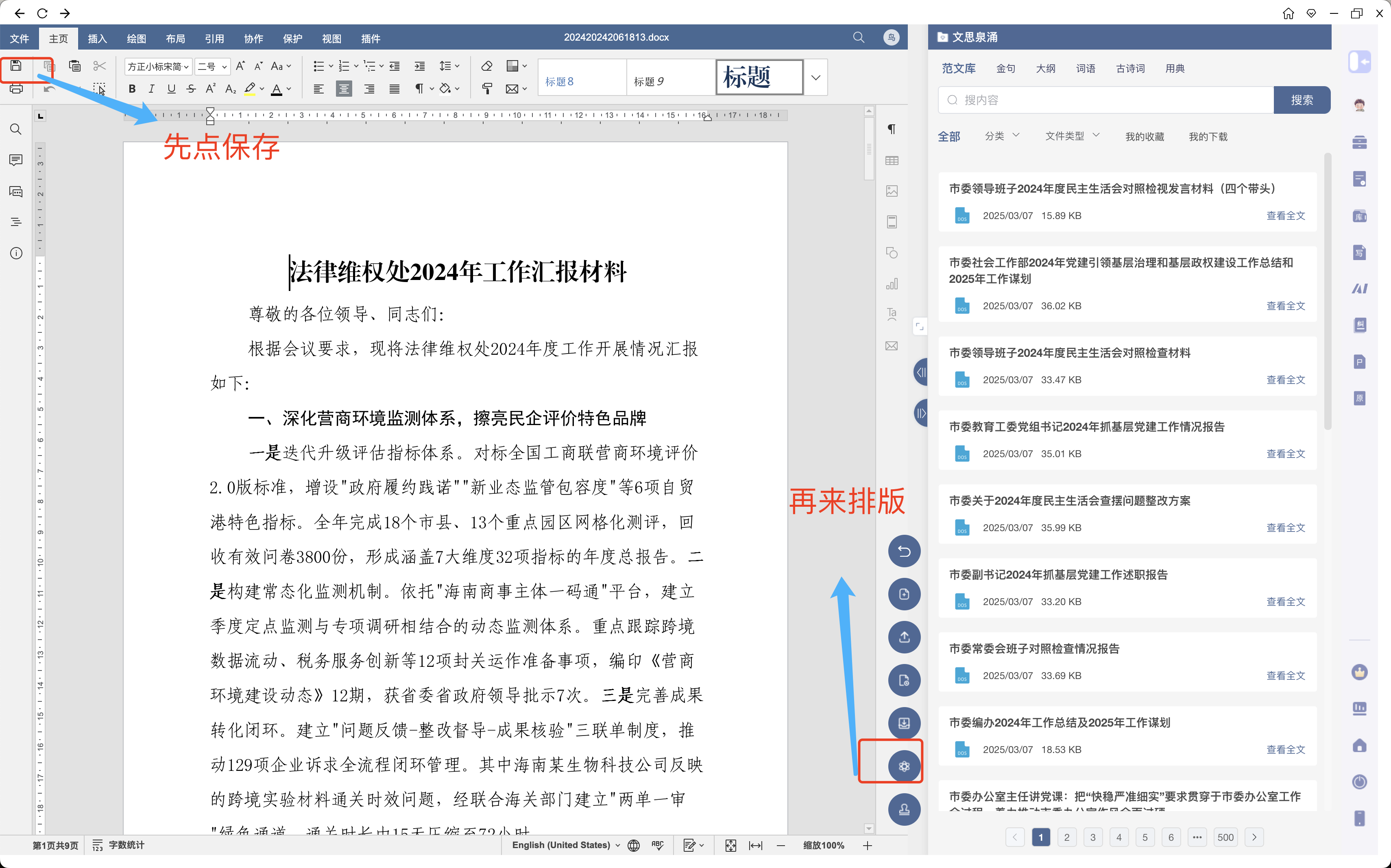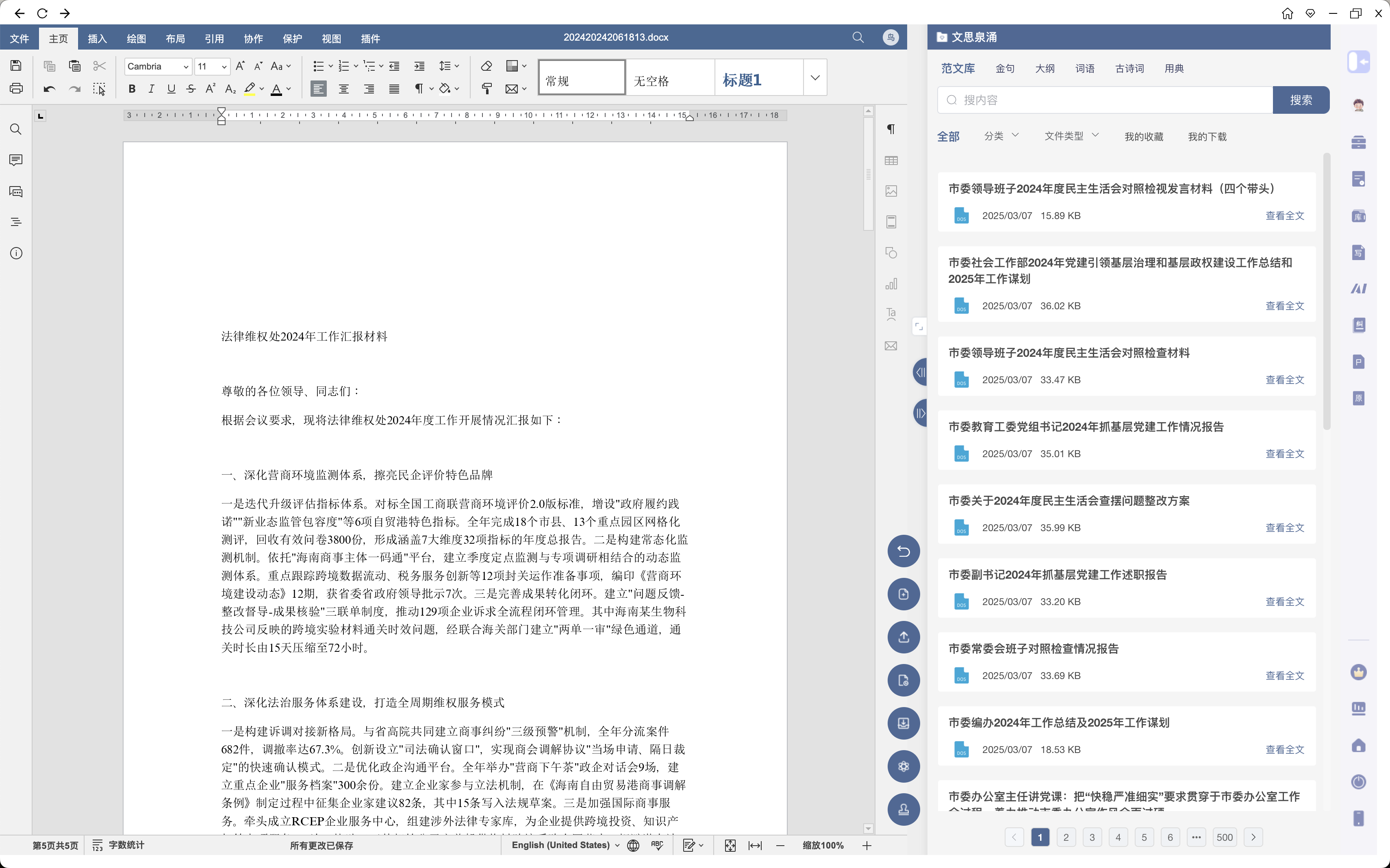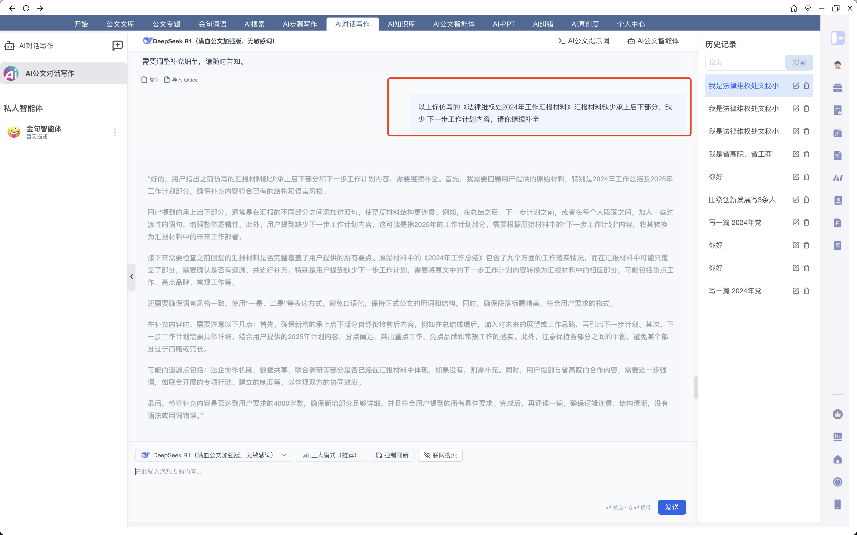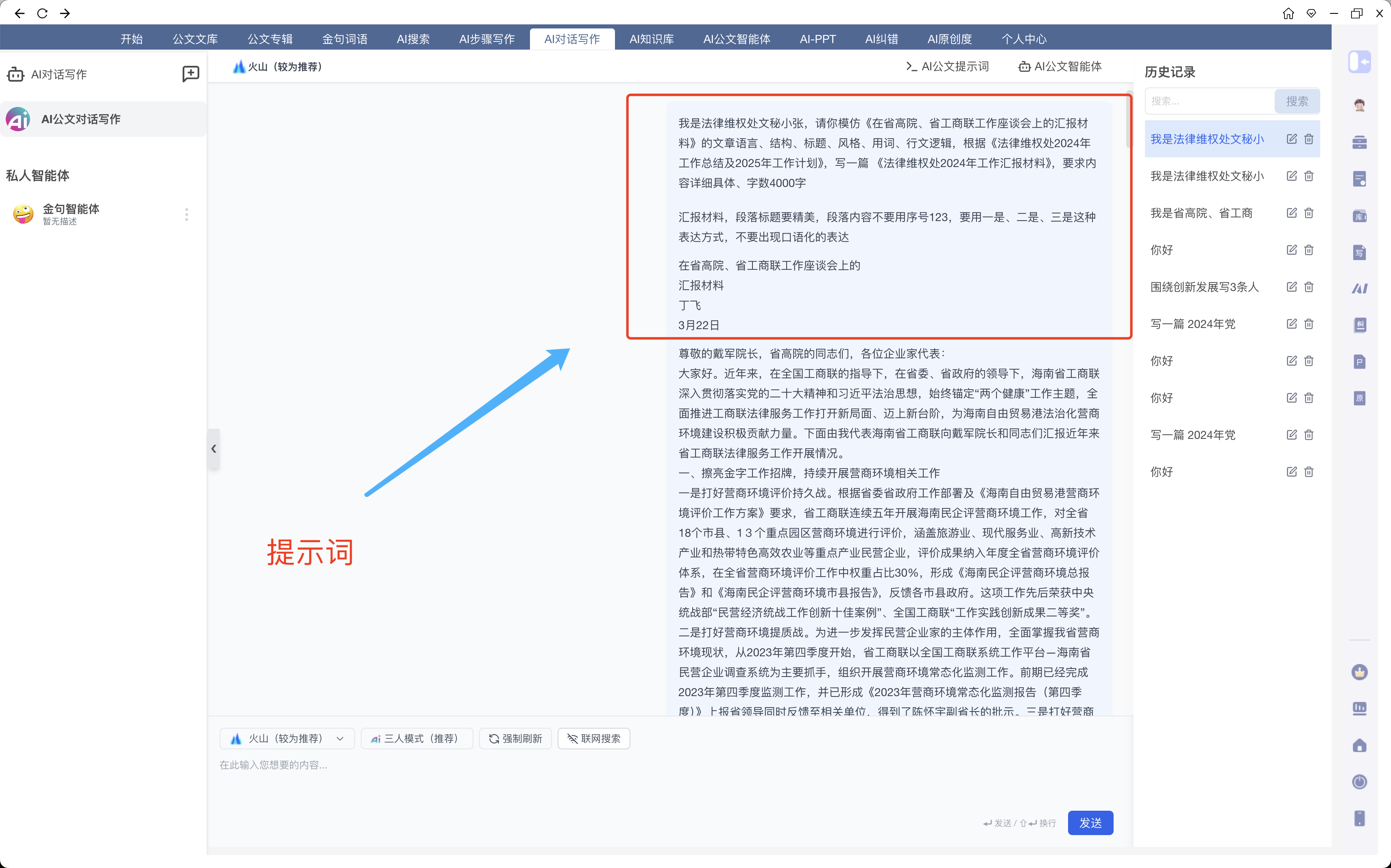 PS:记得这里,一定要把材料的标题都放上去,让AI能知道哪个是《在省高院、省工商联工作座谈会上的汇报材料》,哪个是《法律维权处2024年工作总结及2025年工作计划》