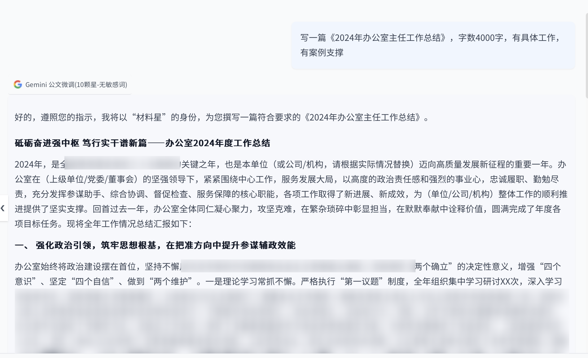 Gemini 公文微调(10 颗星 - 无敏感词):标注 10 星,在多个维度上达到较高水准,是公文写作的优质选择。