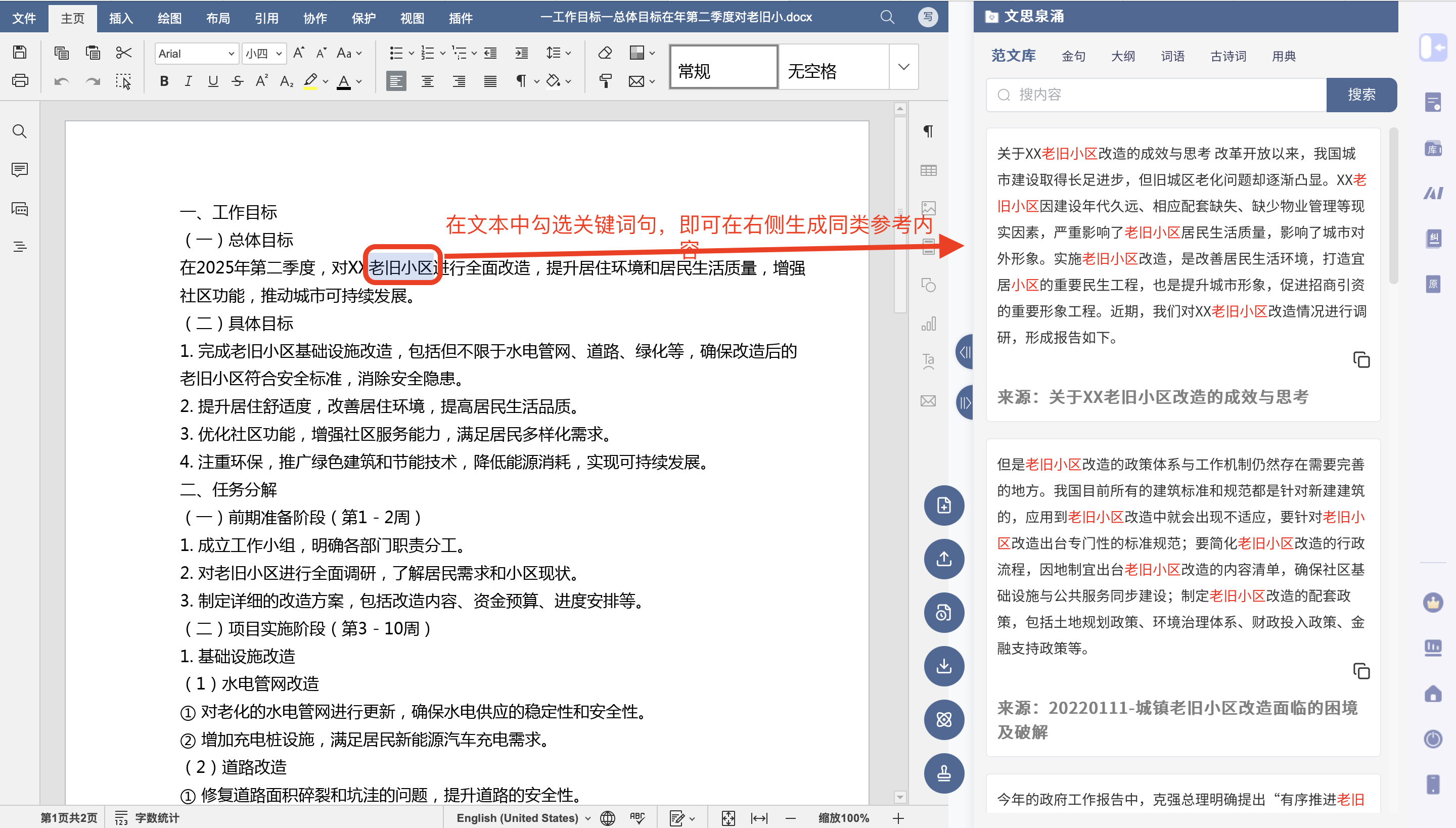 4)在导入 Office页面右侧还有独家功能「文思泉涌」,可根据勾选关键词搜索同类文章参考,巧思实用。